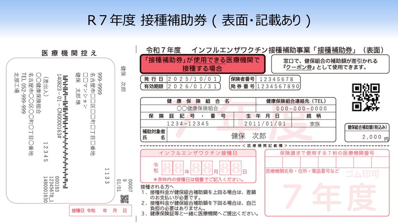 愛知県内にお住いの65歳未満の加入者の方を対象にインフルエンザワクチン「接種補助券」を配布します。